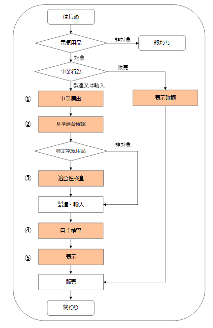 電気用品安全法の届出・手続きは以下のフローに従い実施が必要となります。